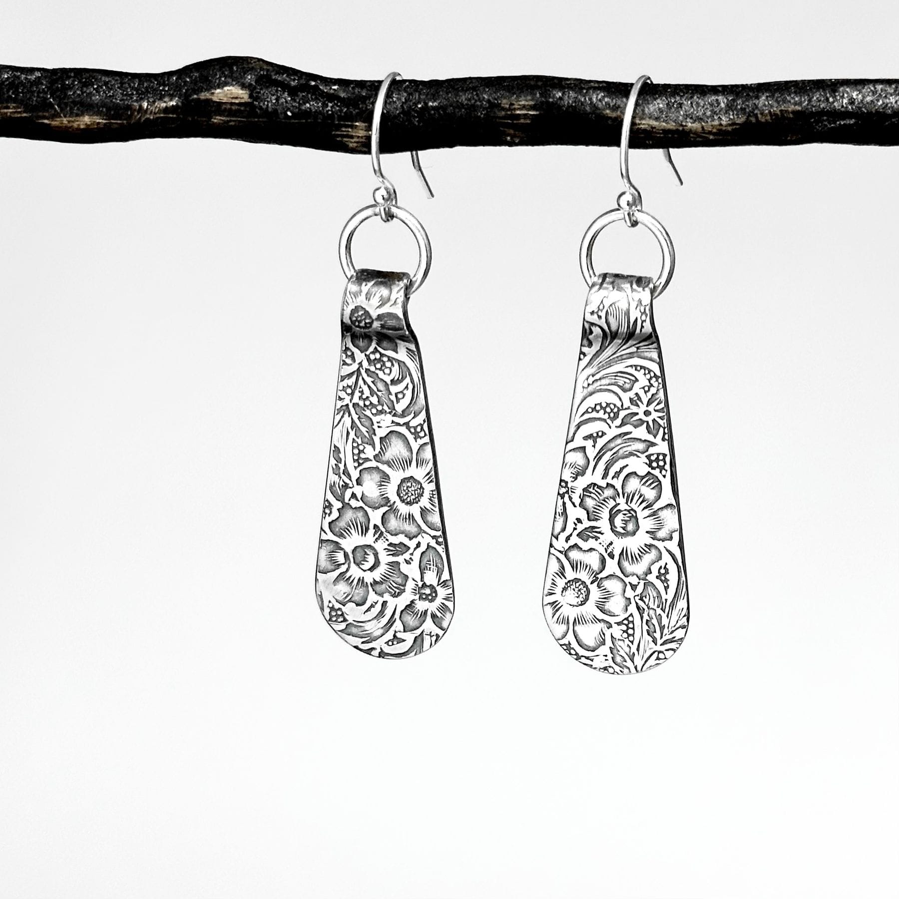 Floral Earrings |Teardrop Shape Flower Dangles with Vintage Pattern RE1.4
